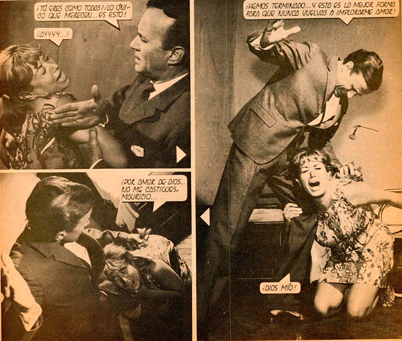 Cine Amor 406, abril 1969. Ana María Román recibe golpes de Álvaro Jiménez por haberle escondido su embarazo. Fotos de David Rodríguez.