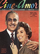 Cine Amor 1, noviembre 1960. Los actores Eduardo Naveda y Maida Monterrey en la primera portada de la revista Cine Amor, foto de David Rodríguez. El uso del color se evidencia en la tipografía principal y el retrato principal hecha estudio.