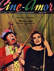 Cine Amor 17, julio 1961. El comediante Chito Morales y la show woman Gaby Cousin, integrante del grupo Las Chispitas, son registrados por René Cáceres en una locación real, bajo la carpa de un circo.