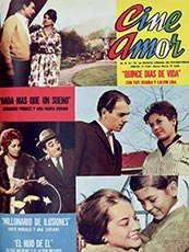 Cine Amor 388, noviembre 1968. Gloria Aguirre teme que su novio, encarnado por Simón Morales, la deje porque ella es hija no reconocida. Foto composición de René Cáceres