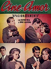 Cine Amor 113, julio 1963. La portada de “Apasionadamente” también es cuadriculada, pero sólo dedicada a una historia y una pareja protagónica: Haydee Meza y Jorge Saavedra. Fotos de David Rodriguez.