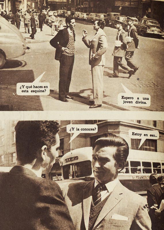 Foto Suspenso 30, octubre 1965. Germán Vega y Luciano Ricci planean sus siguientes pasos en el pasaje Tenderini; fotografías de Luis Valdés.