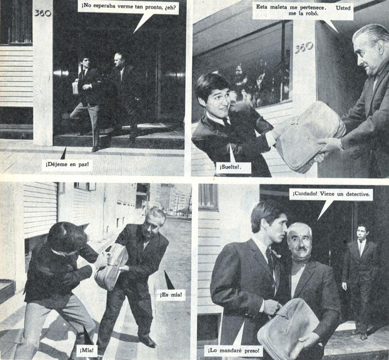 Foto Suspenso 46, mayo 1966. Francisco Morales y Raúl Latorre forcejean por un maletín en la calle Ismael Valdés Vergara, fotografiados por Luis Valdés.