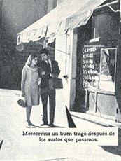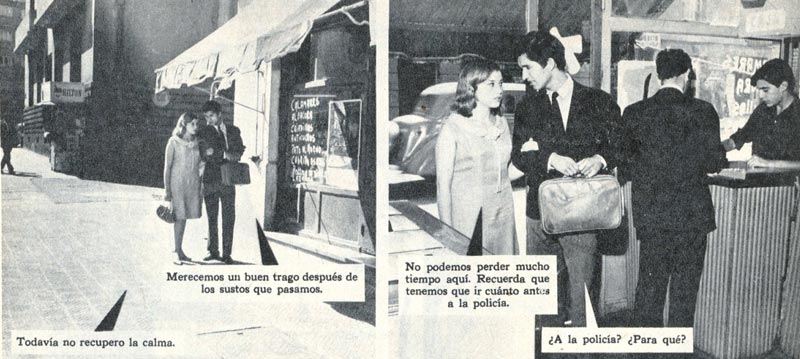Foto Suspenso 46, mayo 1966, Francisco Morales y Francia Crot entran a un restorán ubicado en Merced al llegar a José Miguel de la Barra. Fotos de Luis Valdés.