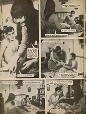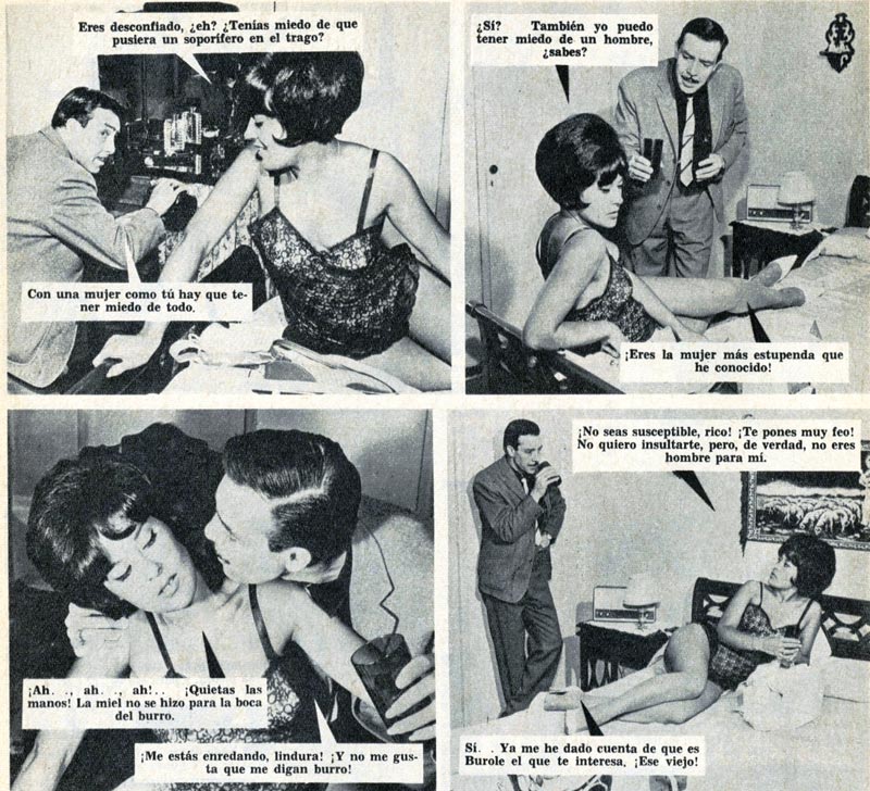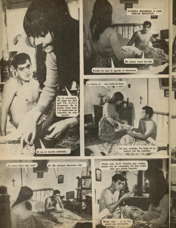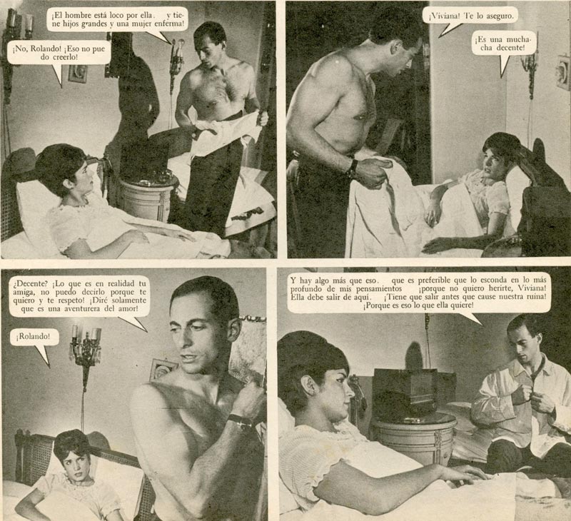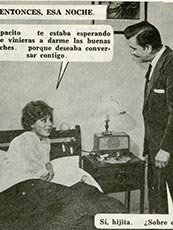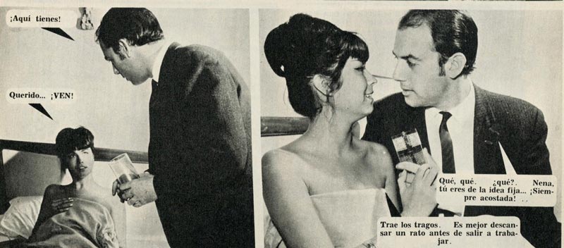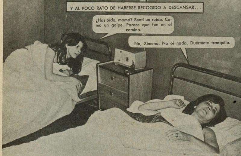 Las escenas en dormitorios exhiben una amplia gama de diseños en camas, marquesas y muebles próximos, como veladores y mesas de noche. Una costumbre de los años sesenta es la presencia de radioreceptores junto a las camas, sitial arrebatado con posterioridad por el televisor.